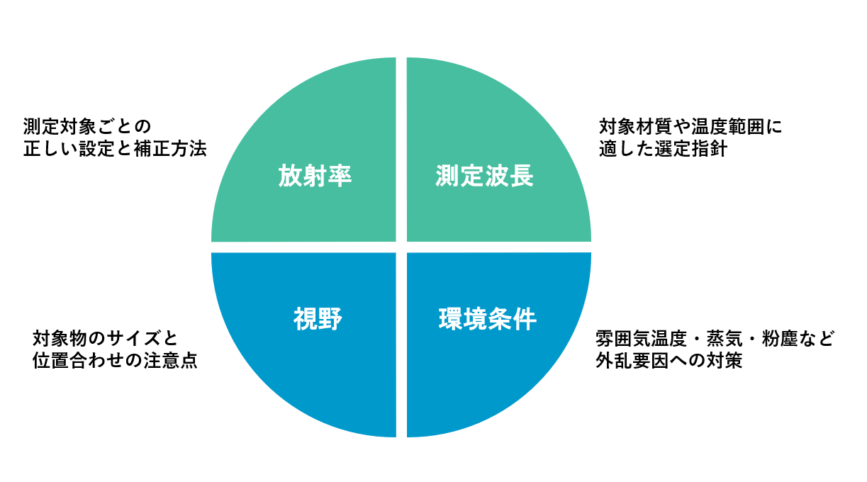 放射温度計の精度や再現性を確保するうえで、次の4つの要素は欠かせません。