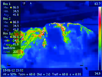 非接触で広範囲に監視し、温度上昇を可視化できるため、